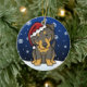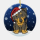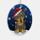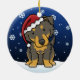 Ornement anglais noir et bronzage mignon de Noël de berger, dessiné dans la bande dessinée de kawaii ! Cette race adorable de chien utilise un casquette rouge de Père Noël, et les flocons de neige tombent tout autour de lui. Absolument chéri, parfait pour l'arbre de Noël de l'amoureux des chiens !