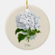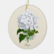 Un beau ?uvre d'art vintage est montré sur cet ornement. Un hortensia blanc est des deux côtés. Le texte personnalisable en vert est au fond de chaque côté de l'ornement. Grande idée de cadeau !