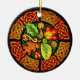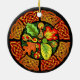 Le chêne, l'érable, le houx, et le feuille d'aulne dans diverses étapes de couleur d'automne changent, entouré par art celtique de knotwork en oranges, rouges, et or.