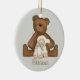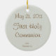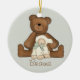 Premier ornement de souvenir de sainte communion avec l'ours et l'agneau de nounours sur l'arrière - plan vert doux.