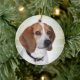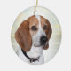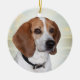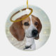 Le beagle dans des ailes de halo et d'ange est décrit sur l'ornement en céramique bilatéral de Noël pour votre arbre de Noël.