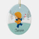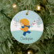 Daté et a personnalisé l'ensemble de patinage d'ornement de Noël de cheveux de glace de garçon brun mignon de patineur sur un arrière - plan rempli par neige avec des arbres et un bonhomme de neige. Un cadeau de Noël de merveille sure à priser depuis de nombreuses années pour venir.