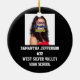 Ajoutez votre photo et votre texte à l'arrière de cet ornement personnalisé de basket-ball Noël, Vacances ou Auto-Ornement. Comprend un ballon de basket orange à l'avant avec votre image, et une formulation personnalisée à l'arrière. Idéal pour un joueur de basketball du lycée, une photo d'équipe sportive ou un cadeau pour un fan de sport étoilé !