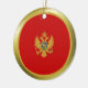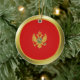 Les deux côtés de cet ornement comportent le drapeau de Monténégro morphed dans un cercle avec une jante d'or. Décoration monténégrine simple pour votre maison.