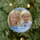 La grand-maman et le grand-papa de Joyeux Noël ornementent personnalisable avec votre propre photo de famille dans le motif de fête bleu et blanc élégant de flocons de neige. Un cadeau élégant de Noël pour des grands-parents cette saison des vacances.