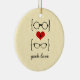Un ornement de lunettes Geeky mignonnes et capricieuses avec un coeur rouge flanqué de deux paires de lunettes geeky, une paire de mâle et une paire de ceintures. Ce doux ornement ajoutera une touche de nervosité à tout décor ! Facile à customiser, ajoutez simplement le texte personnalisé de votre choix. Cliquez sur "Customiser" pour trouver d'autres options de personnalisation.