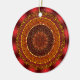 Ce mandala sur le thème du feu expose les aspects lumineux et sauvages de l'élément avec des magma brillants comme des couches, des flammes, et diverses autres représentations du feu dans les rouges, les oranges et les jaunes.
