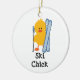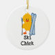 Un poussin jaune mignon tient une paire de skis et de poteaux bleus sur les T-shirts de poussin de ski, le tee - shirt, les autocollants, les tasses et plus de cadeaux n'importe quel skieur qui aime frapper les pentes pour l'amusement ou le sport.