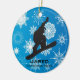 Snowboard Ornement personnalisé Noël 20XX sur un arrière - plan de snowflake. Tout le texte personnalisable, avant et arrière ! Pour supprimer tout texte, supprimez l'exemple de texte et laissez vide.