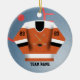 Customisez cet ornement du Jersey de joueur de hockey avec votre nombre et nom d'équipe sur l'avant et votre dos de nom et de nombre dessus. Fait un grand cadeau pour votre joueur de hockey préféré ou fait également un grand cadeau d'équipe. Grand pour le lycée et les cadeaux intra-muros de Ligue de Hockey !