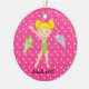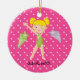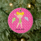 C'est un ornement adorable de Noël pour ce gymnaste dans votre vie ! C'est un gymnaste mignon. Elle porte une combinaison verte. L'arrière - plan est rose indien avec le pois blanc. Elle est a les deux le bras dans le ciel. Elle porte une médaille autour de son cou. À côté de elle est une étoile filante de lavande et vert clair de l'autre côté. Vérifiez les nombreuses autres conceptions et couleurs dans cette ligne. Aimez ce souvenir pour beaucoup, beaucoup d'années ! illustrations de ©JW