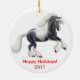 Customisez cet ornement rapidement et facilement ! La conception originale de beaux-arts d'un cheval gitan de Vanner par le concepteur Carolyn McFann du studio de ronronnement de deux chats sur un ornement de qualité pour le cheval évente.