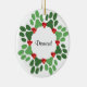 Personnalisez un ornement de Noël pour votre animal familier spécial. Graphiques bilatéraux avec une guirlande verte d'empreinte de patte décorée des baies rouges lumineuses. Vous pouvez personnaliser avec votre nom d'animal familier. Un cadeau parfait pour l'amoureux des chiens. Ou personnalisez ceci comme cadeau à votre vétérinaire, groomer de chien ou garde d'enfants d'animal familier.