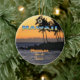 Un ornement circulaire en céramique montrant une image romantique de Buddha Point sur la Grande Île d'Hawaii, ses palmiers et ses rochers de lave côtiers déchiquetés silhouette contre un ciel sombre orange et jaune. Hau’oli Lanui = Joyeuses fêtes Hau‘oli Hanukaha = Joyeux Hanoukka Mele Kalikimaka = Joyeux texte de Noël peut être modifié ou supprimé à l'aide du modèle Personnaliser It et la bannière Hawaii peut être supprimé en cliquant sur le lien Clear sous qui Personnaliser le modèle. Vous pouvez modifier les polices de texte, la taille, la couleur, la position et l'alignement en cliquant sur le bouton Customiser.