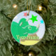 Ornement vert de nom de dinosaure de bande dessinée de Triceratops. Un petit dinosaure vert mignon de Triceratops de bande dessinée et un Diplodocus jaune adorable dans un paysage préhistorique avec des arbres, des montagnes et des vulcanos avec la couleur tient le premier rôle l'ornement avec personnalisable votre nom. Cet article de cadeau de dinos est entièrement personnalisable, ajoute vos textes et images ! Un grand ornement de dinosaures de bande dessinée pour la grande petite fan de Dino !