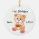 Le premier ornement d'ours en peluche d'anniversaire de votre enfant. Ce mignon petit ours en peluche tient un petit gâteau. Tout le texte (avant et arrière) est entièrement personnalisable.