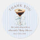 Add a chic finishing touch to your baby shower favors with our Espresso Martini Baby Shower Thank You Sticker! Designed to match the sophisticated A Tini One Is On The Way theme, this stylish sticker features a charming espresso martini illustration adorned with an elegant bow, all set against a classic blue stripe background.