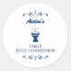 Celebrate a sacred milestone with this personalized Catholic First Holy Communion sticker, featuring a classic chalice and host design with elegant decorative flourishes. Customized with the child’s name, this meaningful sticker is a beautiful way to commemorate the day of First Holy Communion.