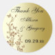 Cet autocollant ou sceau d'enveloppe de couleur or ambre de 1,5 po et floral noir a des papillons de parties scintillant en or en cuivre SIMULÉS et des vignes fleuries qui correspondent au faire-part de mariage ci-dessous. **REMARQUE, si vous changez vous-même la forme de l'autocollant, ou si vous changez les polices, ou la taille de la police, une partie de la conception et/ou du texte peut être coupée. Tout va s'imprimer comme vous le voyez sur votre écran. Je ne verrai pas les changements que vous faites, et Zazzle ne corrigera rien (fautes de frappe, mauvais alignement, etc.). Le texte est entièrement personnalisable. Si vous avez besoin d'aide pour ce produit, envoyez-moi un courriel AVANT de passer votre commande. Si vous avez besoin d'autres articles correspondants, veuillez envoyer votre demande par courriel à niteowlstudio@gmail.com