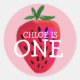 Autocollants d'anniversaire imprimés sur mesure : une idée mignonne pour les décorations de la fête du premier anniversaire de bébé! Un géant illustré fraise rouge sur un arrière - plan rose. Nom et numéro de la Personnaliser.