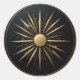Un design élégant autocollant rond avec un coup de soleil géométrique en lignes or fin sur un arrière - plan noir mat. Idéal pour les journaux, les étiquettes cadeaux ou les emballages à thème cosmique.