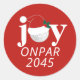 Seal your holiday mail with a smart, modern twist. This “Joy ONPAR” golf sticker features a signature minimalist red design with crisp white typography and a golf ball “O” in joy, topped with a Santa hat. The compact circular format makes it ideal as an envelope seal for Christmas invitations, thank-you cards, or business holiday greetings — and it doubles beautifully as a favor sticker for party packaging or gift tags. Personalize with your club name, year, or short phrase (as shown with ONPAR 2045) for a refined, coordinated finish. Clean, witty, and festive — a small detail that makes your holiday presentation feel effortlessly polished.