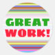 Ce design autocollant comporte un motif de rayures (ou de lignes) de différentes couleurs. Il présente également le dicton encourageant "GRAND TRAVAIL !" en texte vert et rouge. Des autocollants comme ceux-ci pourraient peut-être être utilisés par des enseignants, des éducateurs ou des tuteurs pour reconnaître et encourager un étudiant qui a fait un excellent travail sur un test, un quiz, un papier, un projet ou une autre tâche académique. [~Z0000117]
