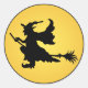 Rond Halloween sorcière sur sticker balai
