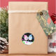 Un joyeux bonhomme de neige et une femme dansent la nuit dans cet autocollant de vacances amusant. Ça a l'air super de sceller vos enveloppes et de décorer des paquets! Également disponible dans cette conception :