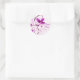 Fleurs violettes sur arrière - plan rose doux rendent joyeux cet autocollant disant "Happy Spring".C'est vraiment agréable de s'attacher sur le développement d'un cadeau