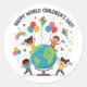 Celebrate the joy of childhood and unity around the world with this colorful Happy World Children’s Day sticker! Featuring smiling children of diverse backgrounds holding balloons, kites, and world flags around a bright globe, it’s a perfect design to spread happiness, peace, and togetherness. Ideal for decorating laptops, notebooks, scrapbooks, or classroom gifts during World Children’s Day celebrations.