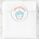 Un autocollant mignon avec un cupcake dessus et texte personnalisable pour votre emballage de boulangerie de cupcake et les promotions.