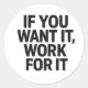 Rond IF YOU WANT IT, WORK FOR IT Sticker