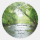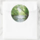 Photo d'une crique qui coule à travers une forêt avec les mots "I Love Forests, keep them clean & alive", affichée sur un Sticker.