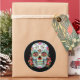 Autocollant rond avec l'image d'un crâne du Jour des Morts décoré de fleurs roses et de vignes, de roses rouges et d'une croix avec quatre gouttes de sang sur le noir. Le Jour des Morts, ou Fête de toutes les âmes, est célébré le 2 novembre dans différents pays européens et latino-américains. Au Mexique, la période des festivités de la Fête de l'Âme est célébrée pendant plusieurs jours, y compris la Toussaint le 1er novembre. Voir carte postale et étiquette correspondants. Voir l'ensemble de la collection Mexico Sticker dans la section CARDS, POSTCARDS & STICKERS.
