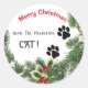 Vœux de Noël du sticker/enveloppe de chat pour correspondance de vacances, cadeaux, cartes et plus encore. Caractéristiques empreintes de patte mignonnes et couronne de verdure sur le sticker rond classique. Peut être modifié pour lire Joyeuses Fêtes ou Meilleurs Vœux.