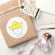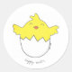 Cet autocollant est imprimé avec un petit poulet à la main, heureux et partiellement haché.