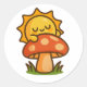A cozy cottagecore sticker featuring a kawaii sun peacefully napping atop a red mushroom. Perfect for journaling, decorating, or gifting — printed on a fully transparent background with vibrant colors and clean edges.