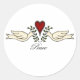 Des colombes de paix joignent leurs branches d'oliviers pour entourer un coeur de style folklorique avec le message inspirant de paix.