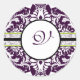 Rond LETTRE INITIALE DE Sticker pourpre Damas V Mariage