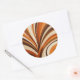 Apportez une touche rétro à votre style avec cet autocollant rond d'inspiration les années 70. Avec ses rayures ondulées dans les tons chauds orange, marron et crème, il conviendra parfaitement aux amateurs de nostalgie et de vintage.