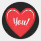 Je T'Aime ! Cet autocollant à coeur rouge épais présente un coeur rouge vif sur un arrière - plan noir solide. Le texte "Vous !" peut être customisé pour en faire le vôtre.
