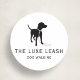 Luxury Dog Walking Sticker | Dog Silhouette Logo sticker and label. Elegant round sticker with a black dog silhouette and pink leash. This customizable design allows you to add your business name, logo text, or contact information, making it perfect for dog walking businesses, pet salons, and pet care professionals. Ideal for packaging seals, appointment cards, thank you stickers, and branding labels. Clean, modern, professional style for pet business owners. ©PetStar Studio