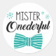 Mister Onederful garçon premier anniversaire thème de fête autocollant de fête. Utilisez cet autocollant pour les faveurs de fête et plus encore! Joli thème de la cravate arc-en-ciel.