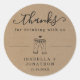Drôle Mariage de bière / Merci Sticker avec un arrière - plan kraft rustique - Un sticker mignon pour vos faveurs de mariage.