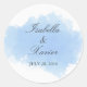 Cet autocollant de faveur de mariage présente une jolie brume d'aquarelle bleue. Vous pouvez customiser des champs de texte et de couleur Arrière - plans à votre goût.