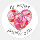 Adorable autocollant "Mon coeur vous appartient" avec mon design rose, rouge & blanc, motif rempli "Doodle Heart" !