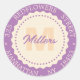 Monogram address purple sticker with seal in vintage style. Retro address sticker with custom name and monogram.