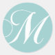 Rond Monogramme bleu blanc M Mariage Favoriser Sticker