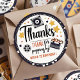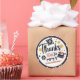 Say "Thanks for popping by!" in blockbuster style with this charming round movie-themed thank-you sticker! Featuring hand-drawn film elements like a movie reel, clapperboard, and projector surrounded by stars, this sticker is perfect for sealing party favor bags or decorating treat boxes. Personalized with the birthday child's name and age, it's ideal for any cinema-themed celebration or Hollywood-style birthday party!